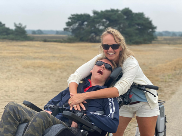 Onze oudste dochter Lisanne, behorend tot de ZEVMB-doelgroep, is inmiddels qua leeftijd “volwassen”. Zij kampt met forse therapie resistente epilepsie. Qua behandelingen en medicatie hebben we alles geprobeerd wat mogelijk is, maar niets helpt. In de loop der jaren heeft Lisanne allerlei andere fysieke problemen en ongemakken erbij gekregen. Dit beeld doet progressief aan. Ik blijf het bizar en frustrerend vinden dat de oorzaak van Lisanne’s beperkingen onbekend is. Alles wat onderzocht is, heeft ze niet. En toch is ze ZEVMB. Lisanne heeft 24/7 zorg, begeleiding en vooral veel aandacht en liefde nodig. Lisanne woont volledig thuis. Logeren durven we niet aan. Overdag gaat Lisanne naar het KDC Plus van Stichting Zomerkind.