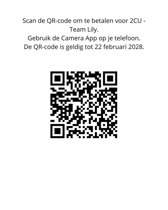 Wil jij Team Lily sponsoren voor hun prestatie? Dat kan via onderstaande betaallink, of via de QR-code hiernaast.